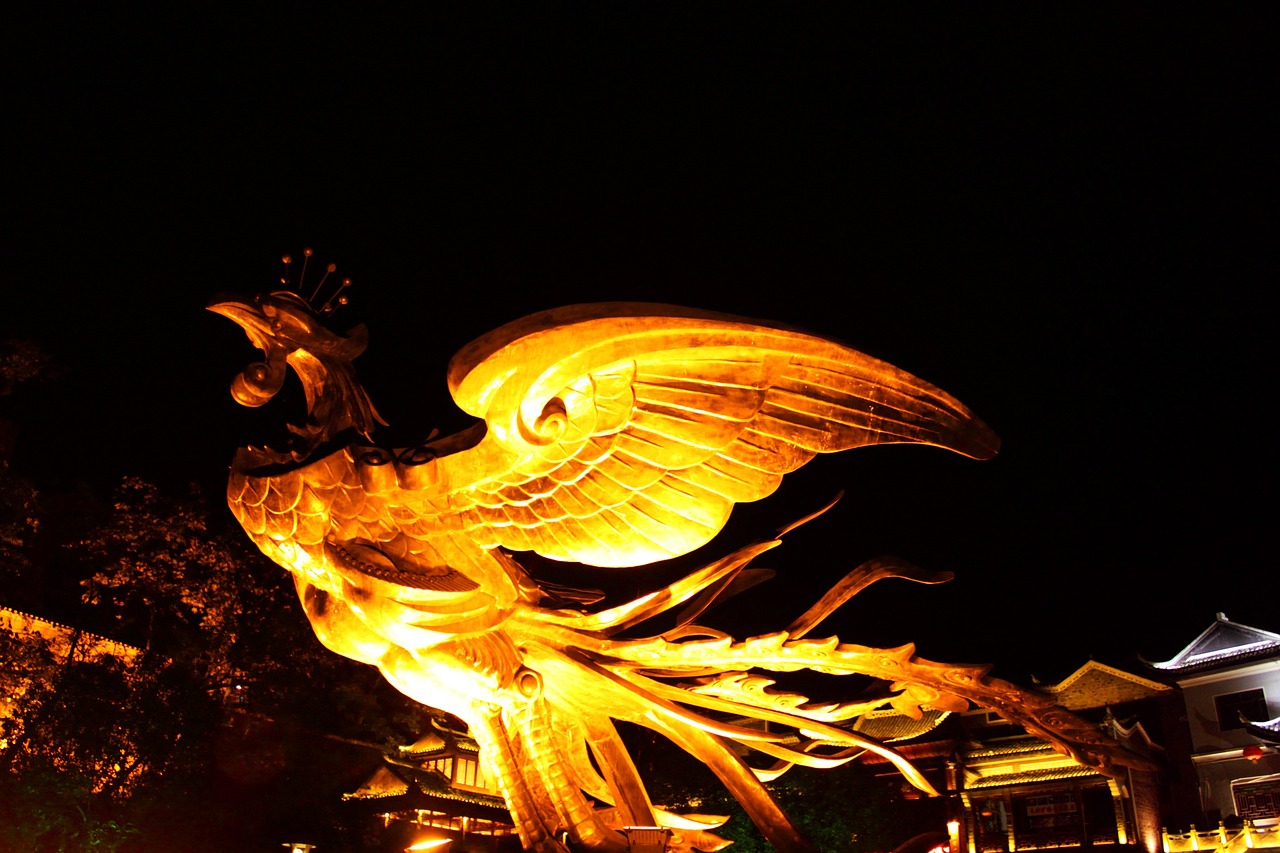 36. 봉황새가 아름다운 빛을 발산하며 하늘 위로 날아가는 꿈
